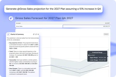 AI-generated financial plans can be trusted when they are built on your data and provide full transparency into how results are produced. Planful AI includes the drivers, trends, and logic behind each projection, giving teams clear visibility into how numbers are calculated and confidence in using them for decision-making.