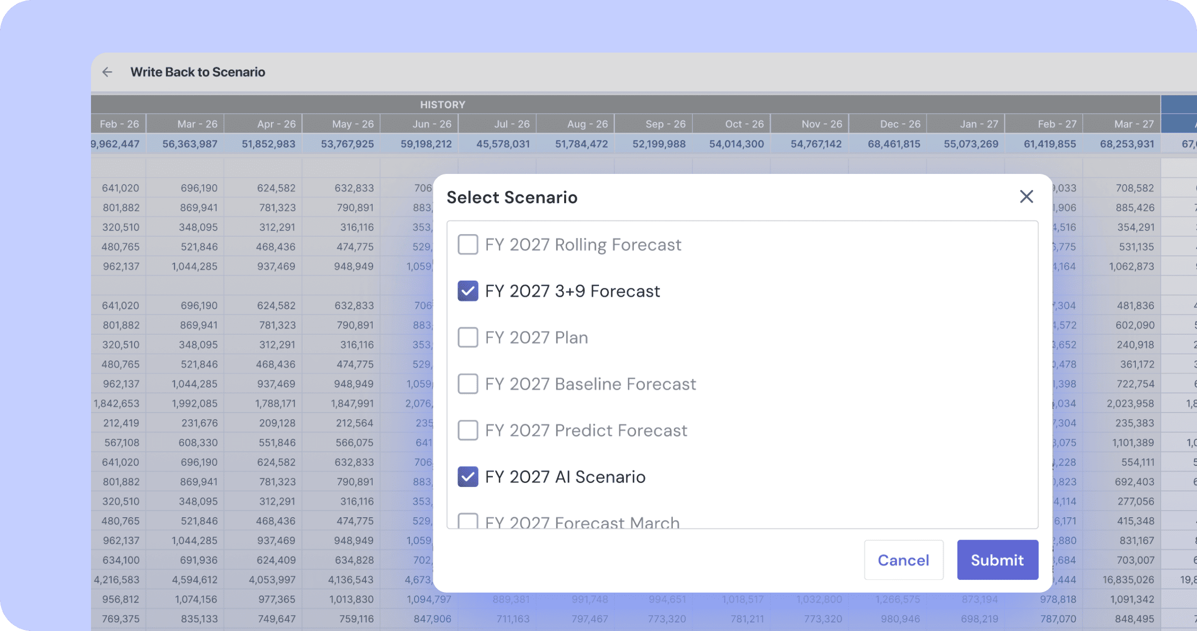 Planner connects projections and context across the planning cycle, so your team can move from forecasts to decisions without resetting each cycle.
