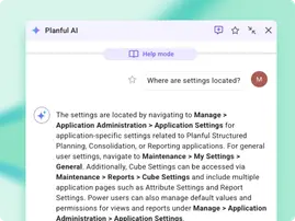 Help Assistant makes getting guidance effortless. From quick tasks to complex workflows, you get clear, structured instructions directly in your Planful instance—so you, and your teams stay productive, independent, and moving forward without disruption.