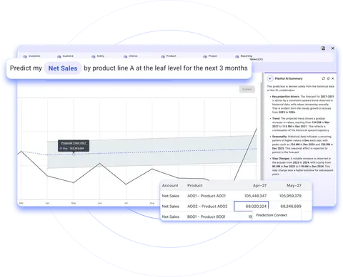 Ask planning and forecasting questions, update assumptions, and refine plans with prompts. Move faster through cycles, and keep pace as conditions change.