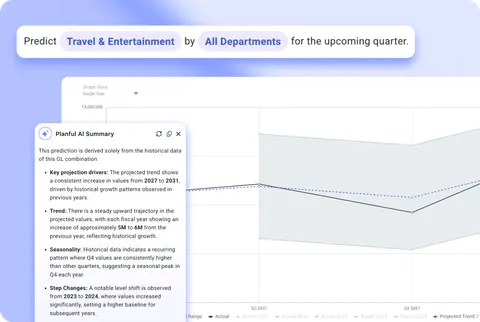 AI-generated financial plans can be trusted when they are built on your data and provide full transparency into how results are produced. Planful AI includes the drivers, trends, and logic behind each projection, giving teams clear visibility into how numbers are calculated and confidence in using them for decision-making.