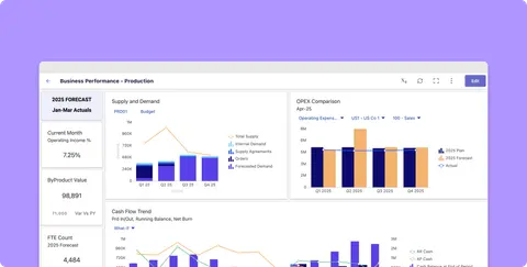Centralize data collection, analysis, and reporting across production, procurement, and financial planning teams.